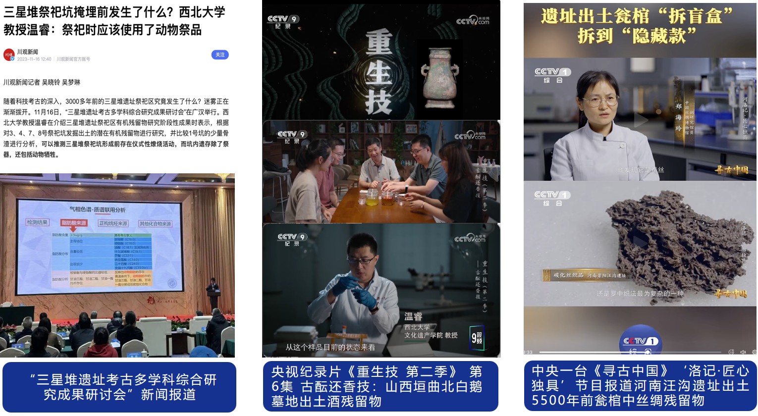 “考古有机残留物生物来源精细鉴别关键技术与应用”项目由西北大学牵头,联合中国丝绸博物馆、中国科学院大学、中国科学院古脊椎动物与古人类研究所、陕西省考古研究院、浙江大学、北京科技大学、厦门大学、故宫博物院、四川省文物考古研究院等单位共同承担,完成周期为2022-2025年。项目针对考古有机残留物“成分杂、鉴定难、方法缺、数据库少”等问题,综合运用多学科分析方法,创新性地构建了从“田野现场快速识别—实验室精细鉴定—综合数据库共享”的全链条、体系化的考古有机残留物分析方法。项目建立的分析方法和数据库平台已成功实现在三星堆、杨官寨、石峁、汉唐长安城等国内重大遗址的示范应用。基于本项目,发表高水平论文50篇,申请或授权专利10项,申请软著1项,培养硕博人才32名,圆满完成任务书的全部指标。项目的部分研究成果已通过中央电视台《重生技》《寻古中国》等纪录片进行推广传播,实现了良好的学术价值与社会效益。