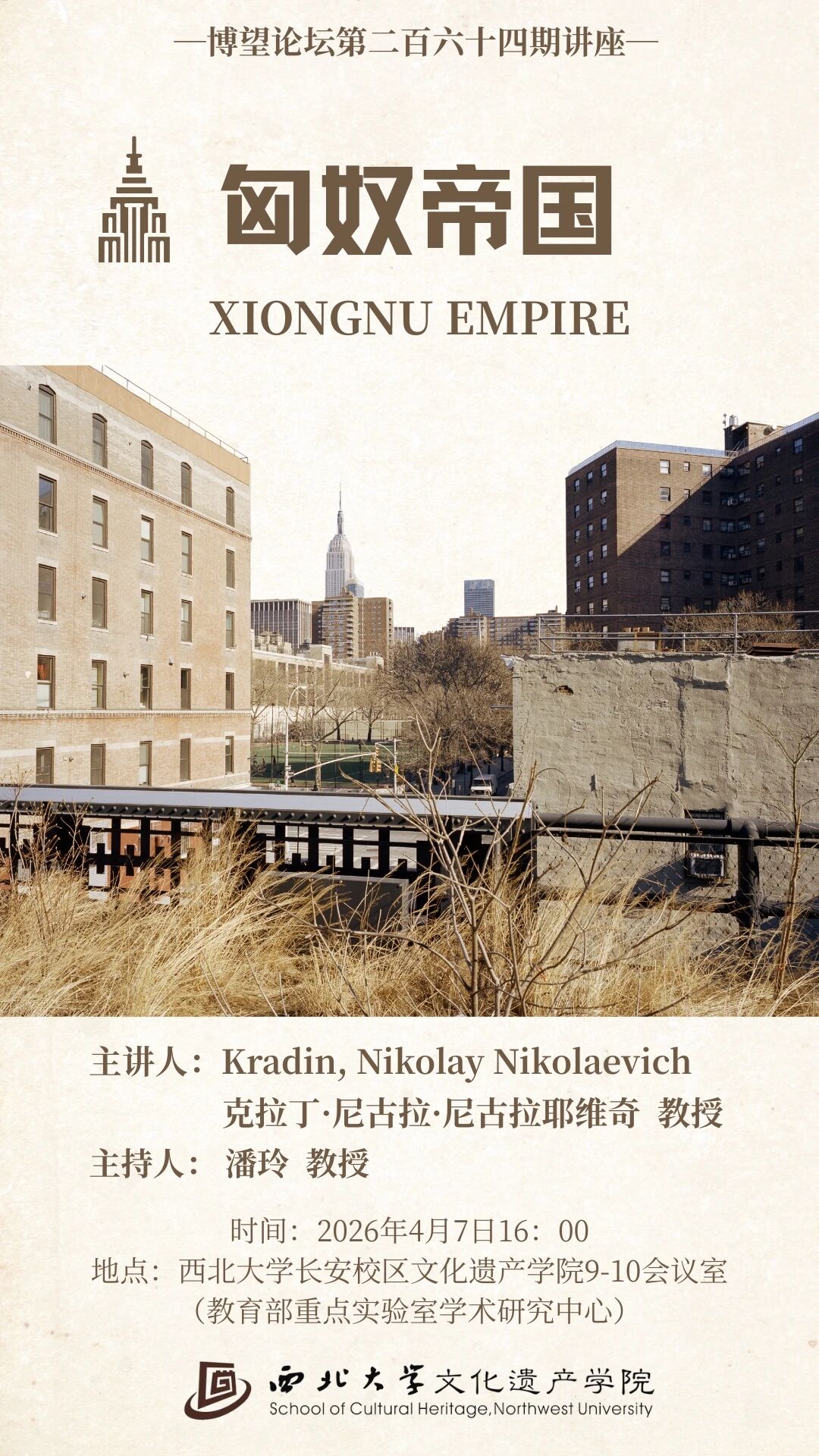讲座概要:系统梳理匈奴帝国的统治方式、政治经济形态及生活方式、考古遗存主要特征等问题。内容包括匈奴的经济、政治结构,汉匈关系,匈奴帝国晚期的政治体系,匈奴研究的创新及主要课题,匈奴遗存的年代学研究,匈奴的城址、聚落和墓葬,古代的全球化等。
